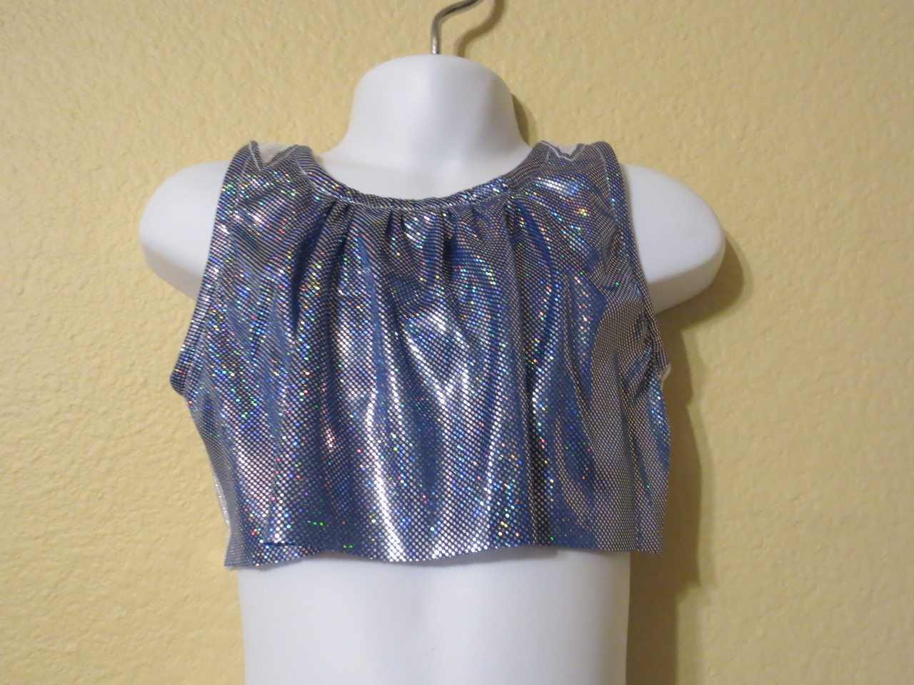 This is a sports bra with a flowing ruffle on the front. We have 1 Youth-Size Small in stock.